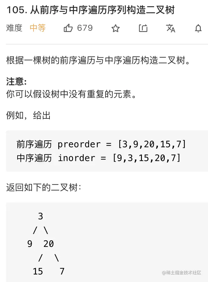 经典问题了,面试/笔试中常考,力扣第 105 题就是这个问题:
