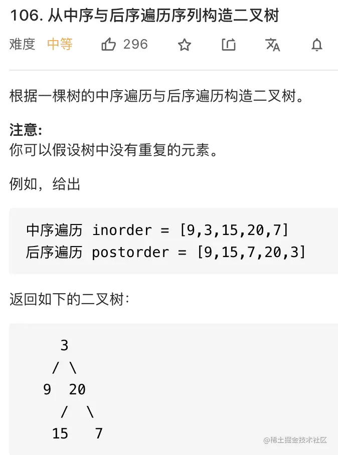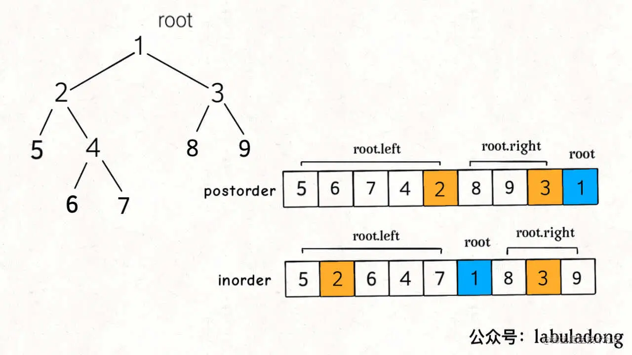 类似上一题,这次我们利用后序和中序遍历的结果数组来还原二叉树,这是力扣第 106 题: