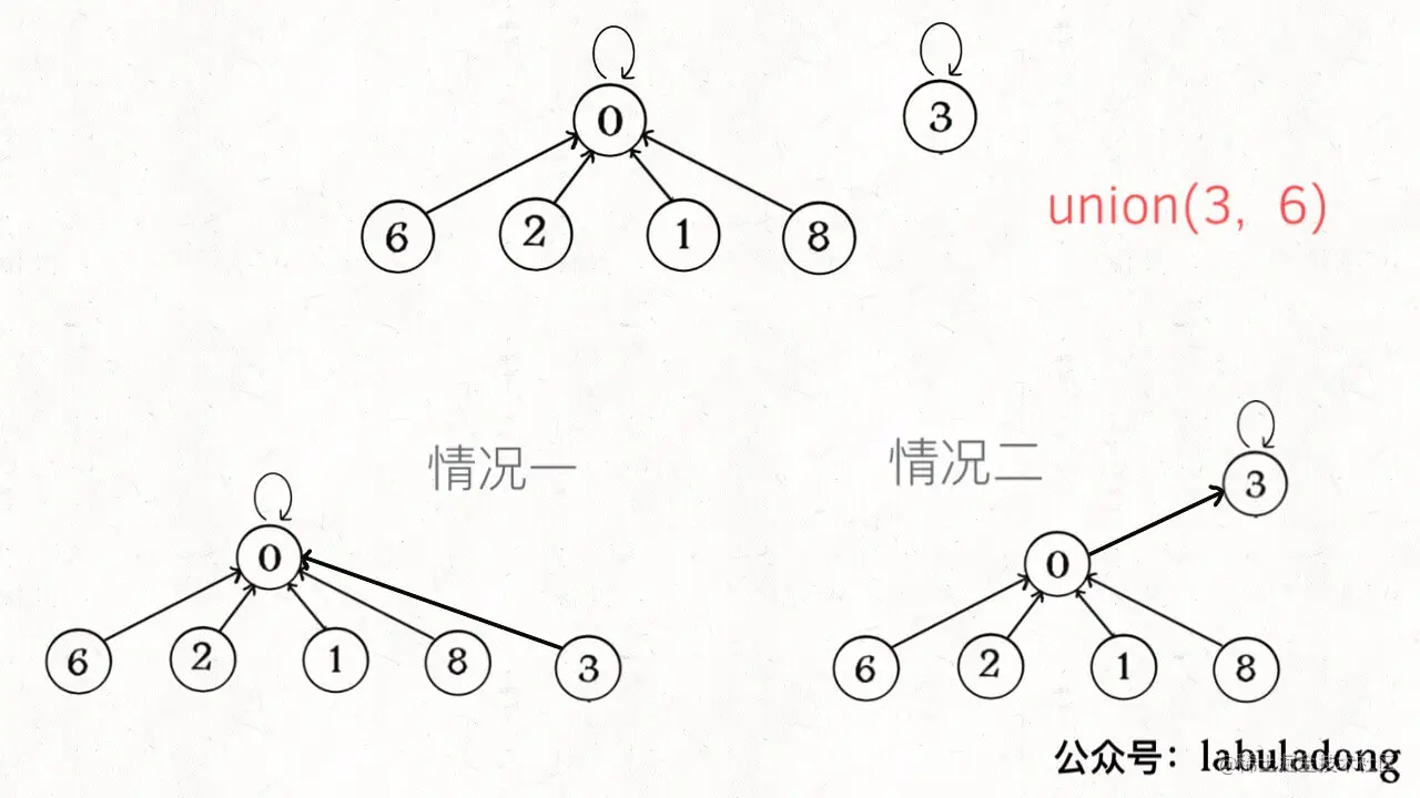 这就是 Union-Find 的核心思路,明白这个图,就很容易看懂代码了。
