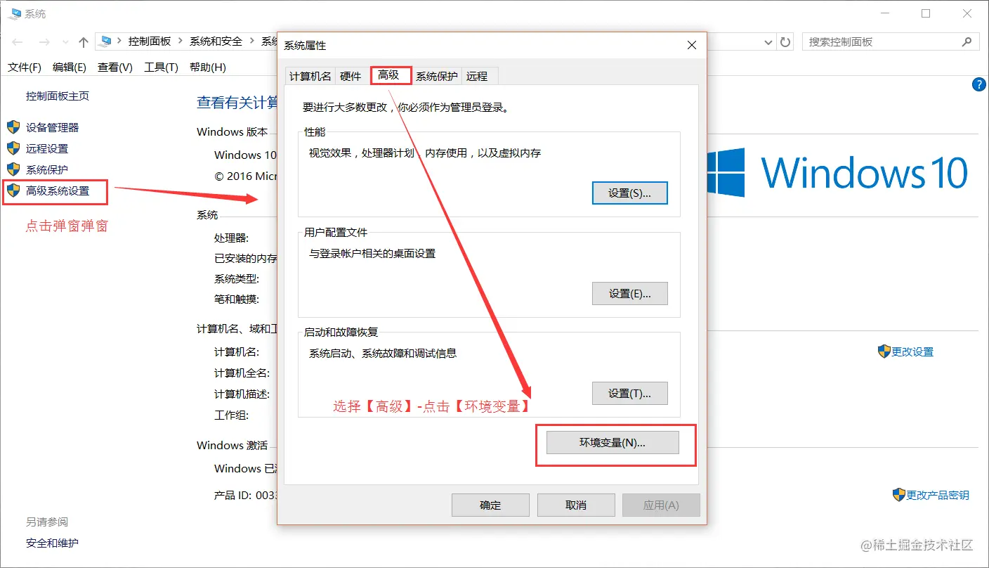 “我的电脑”-右键-“属性”-“高级系统设置”-“高级”-“环境变量