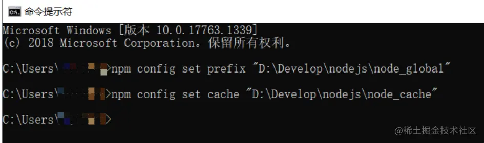 使用下面命令将npm的全局模块目录和缓存目录配置到我们刚才创建的那两个目录