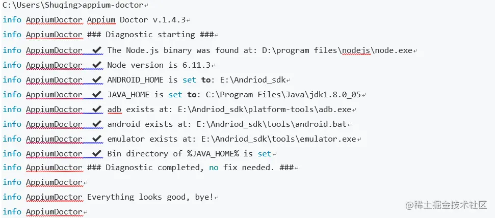 appium-doctor可以检测Appium整体依赖环境配置情况。