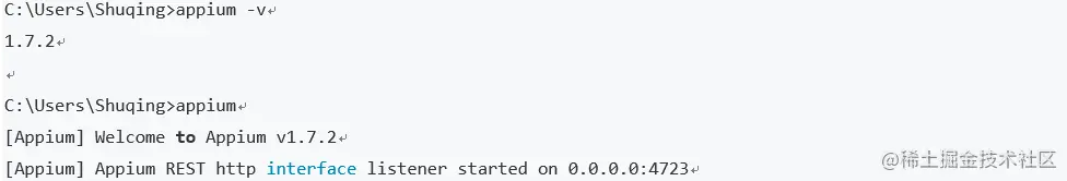 appium -v查看版本(appium与v之间存在空格)