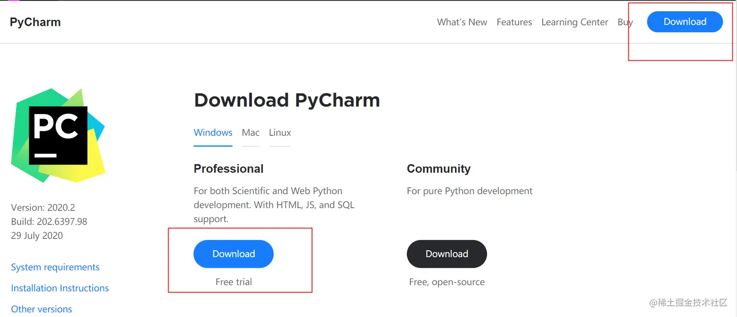 2、PyCharm官网,下载地址