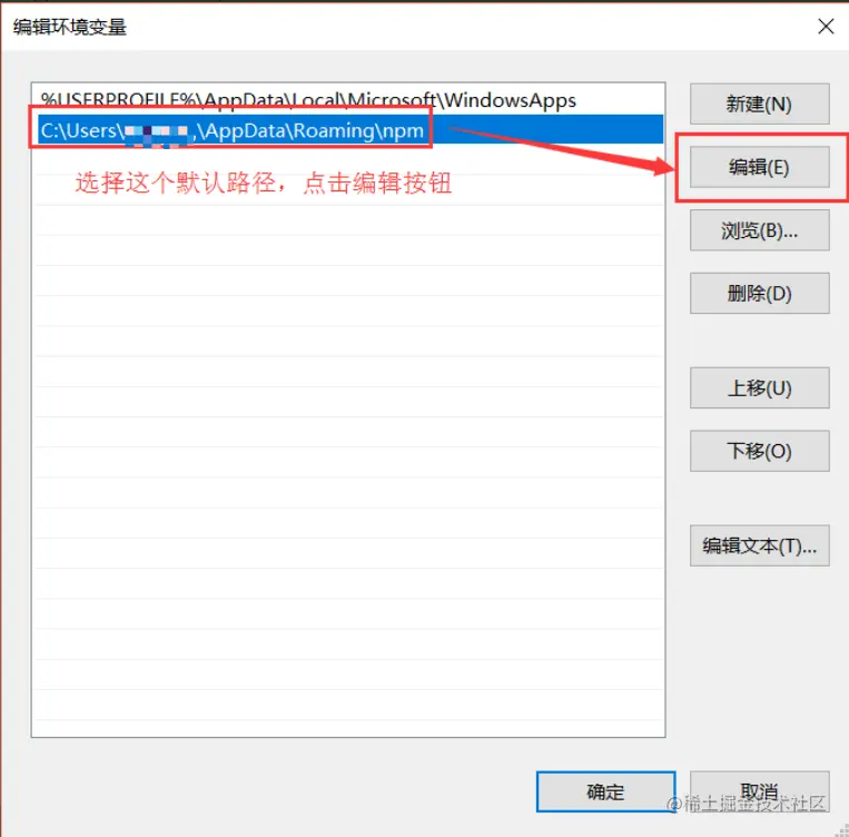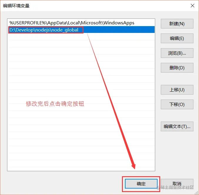 将【用户变量】下的【Path】修改为【D:\Develop\nodejs\node_global】