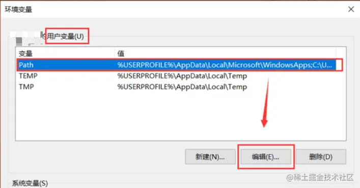 系统变量—>path变量名—>“编辑” 添加: