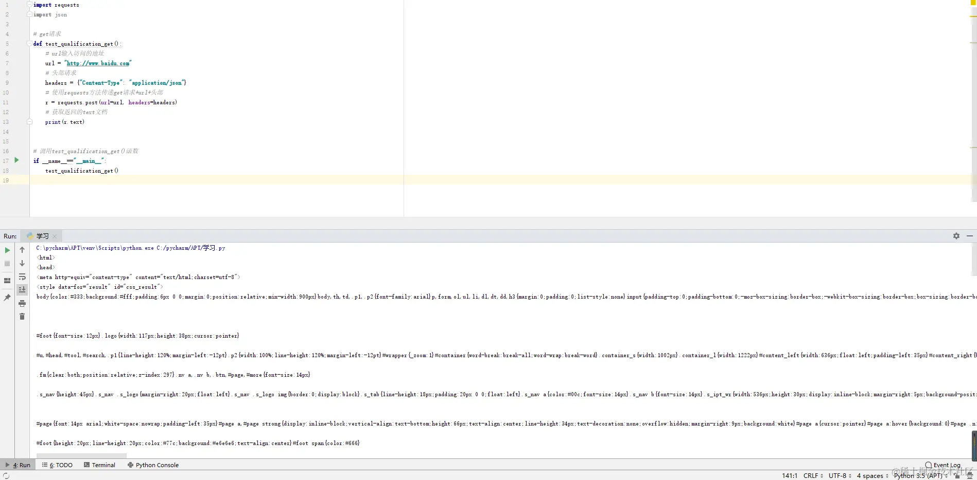 1、get请求:requests.get(‘url‘)