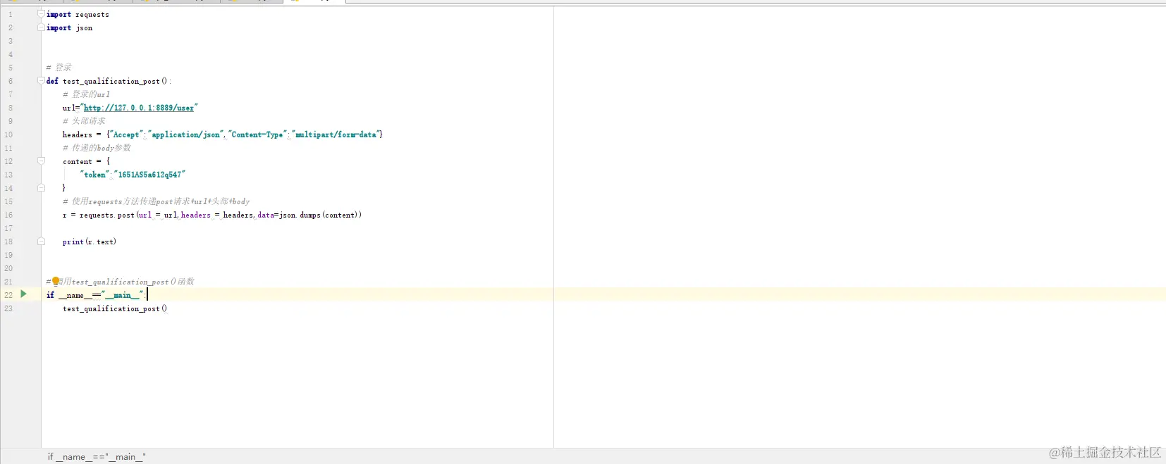 首先引用requests库和json库,因为我们使用的是requests进行接口测试的。