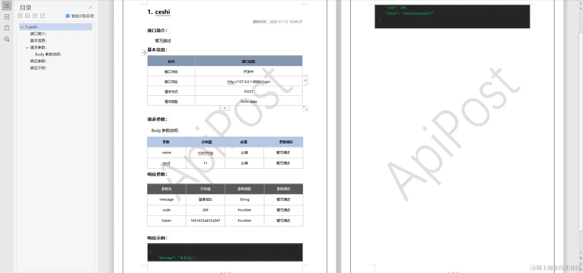 还可以生成各种格式的接口文档比如:word格式的接口文档