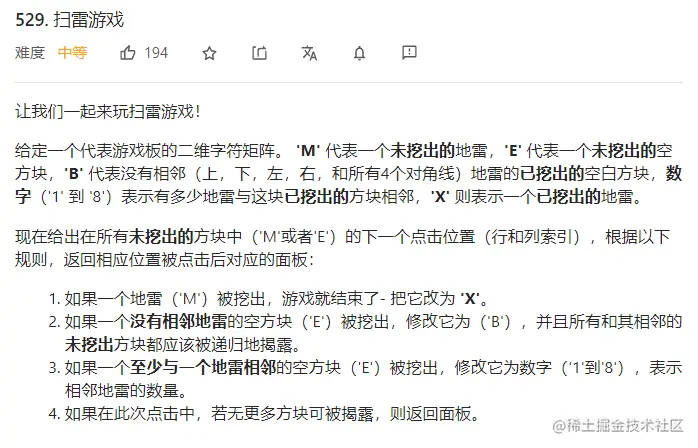 board[x][y] = 'B'; // 题目说了如果挖出一个空白方块被挖出,则需要递归地揭露与其相邻的方块
