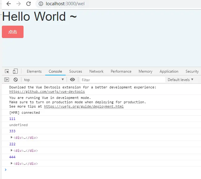 console.log(this.$refs['hello']);