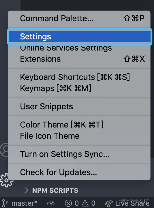 点击重新运行后在调试的Vscode编辑器中找到settings,找到Extendsions