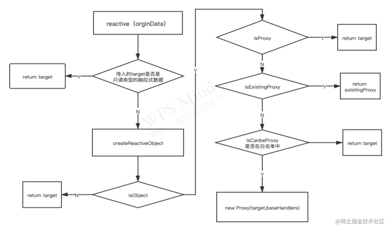 当我们使用reactive函数创建一个响应式数据的流程如下: