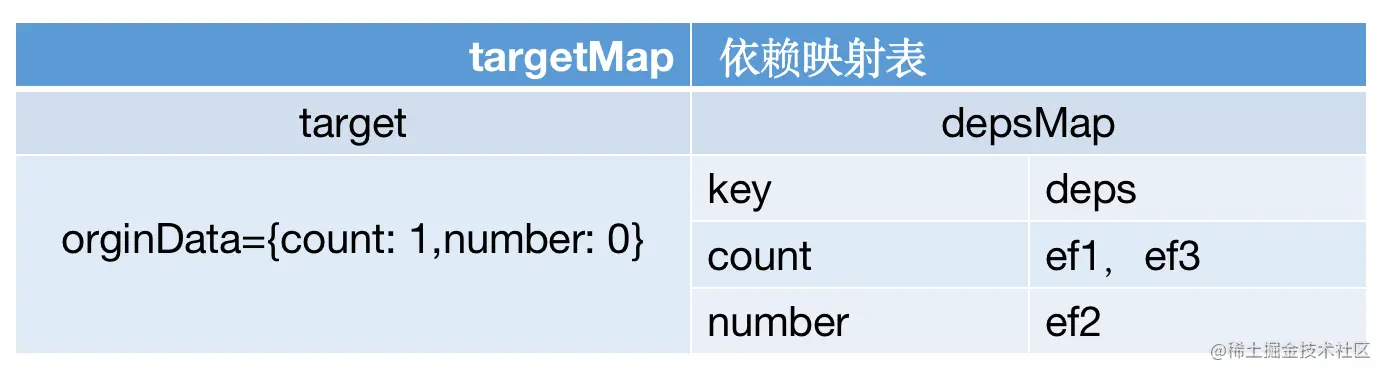 依赖收集的流程很简单,先获取当前target对应的依赖映射,如果没有就以当前的target为键,Map数据结构为值设置一个,