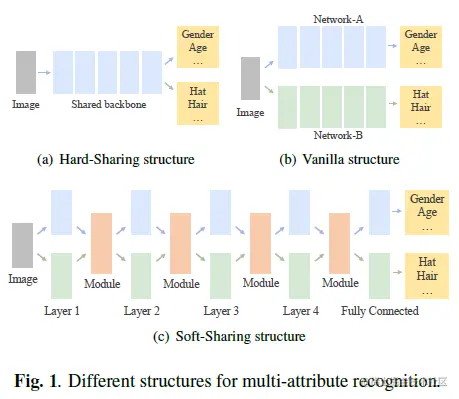 - Vanilla 结构,它集成了两个独立的网络结构,分别负责预测不同的属性。联系紧密的属性就分成同一个组,由同一个网络负责。但是两个网络之间没有任何的交互,一些有用的相关信息可能没有被利用起来。