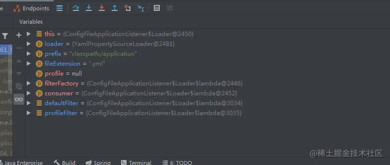 上面这两篇文章将配置文件的加载流程写的很清楚,也实际调试了一番,看到去读取classpath:/application.yml的时候读不到
