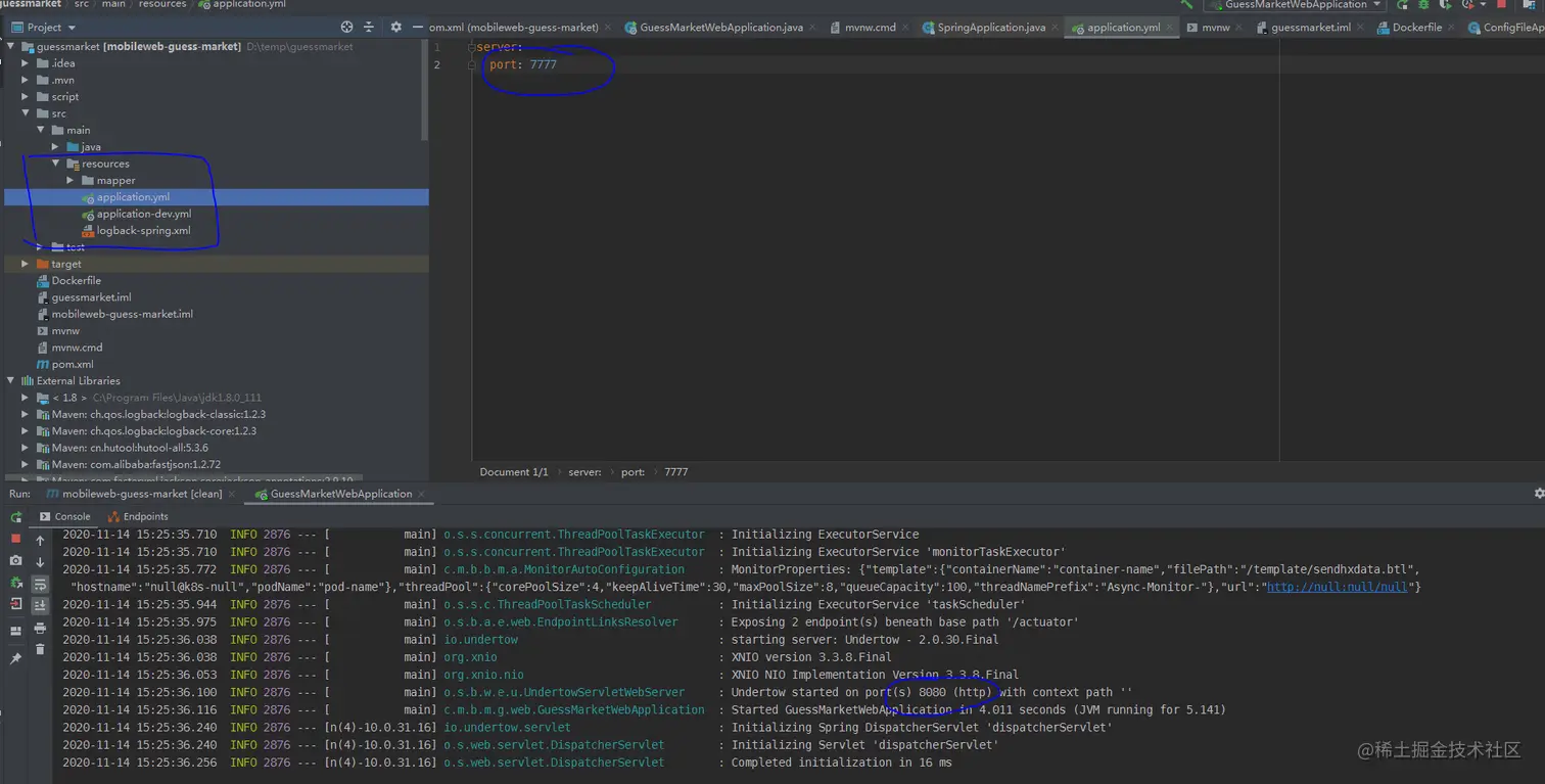 将yml的配置参数统统丢掉,只留下server-port,将端口改为7777,再次启动程序,发现启动是正常的,但是端口号并没有更改,还是监听的8080,突然有点方向了,那么为什么yml文件没有生效呢?