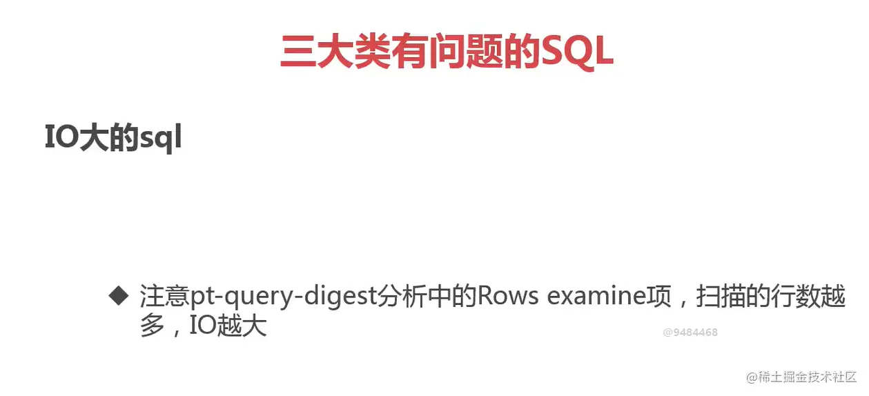 主要看的是执行次数,执行时间,锁表时间,扫描的数据和发时数据的比row send 和row exam,这三个指标决定了系统的而整体性能