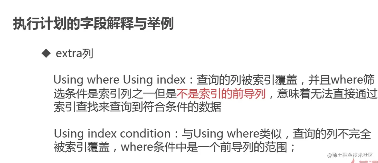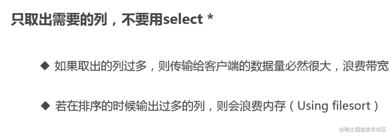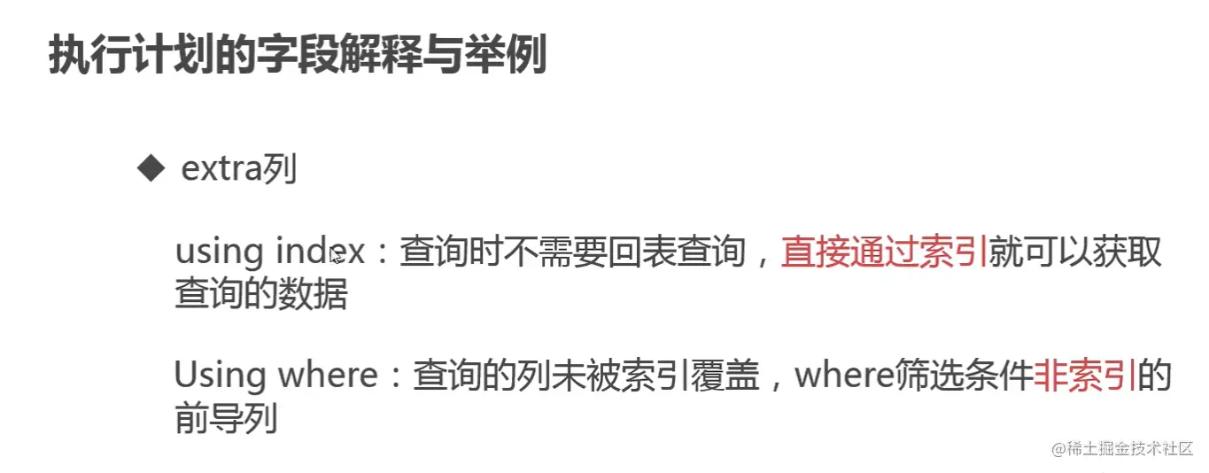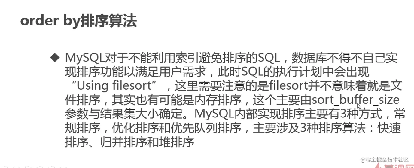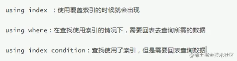 排序的时候,使用到了非索引列(extra字段体using filesort)