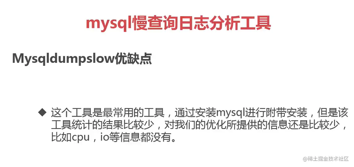 对于简单的语句查看相对容易,但是信息没有 pt-query-digest 的统计全面