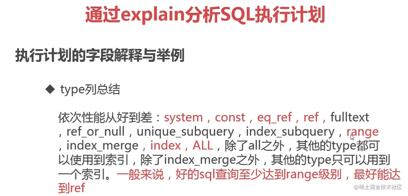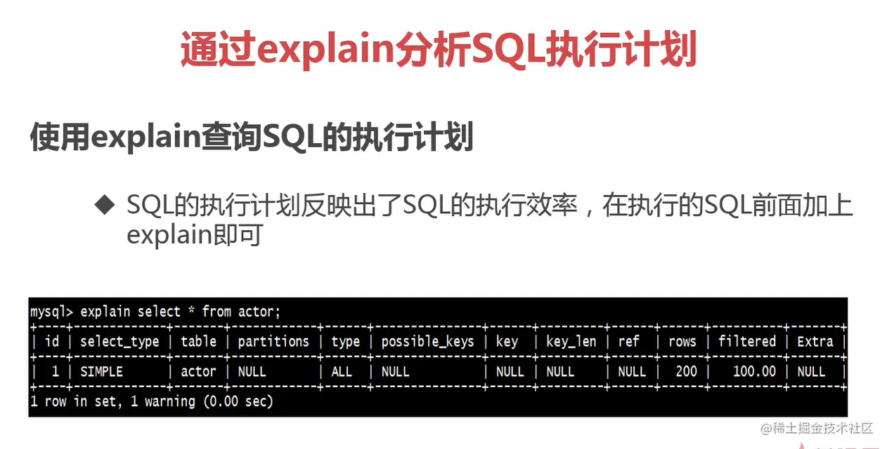 explain入手,查看执行计划(只是查看,执行的计划,需要自己想好)