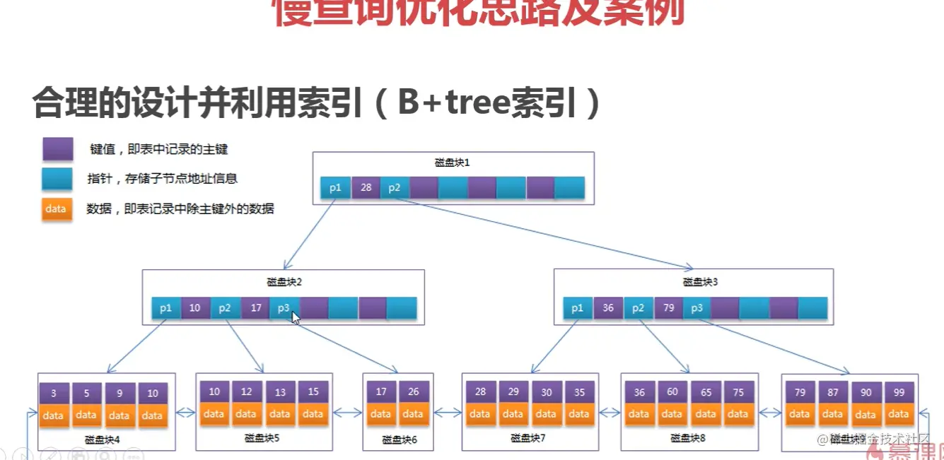 B树的缺点是,当数据量增大时,一个节点可以在很深的位置,需要经过多次的io进行查找,从而提高了查询的成本