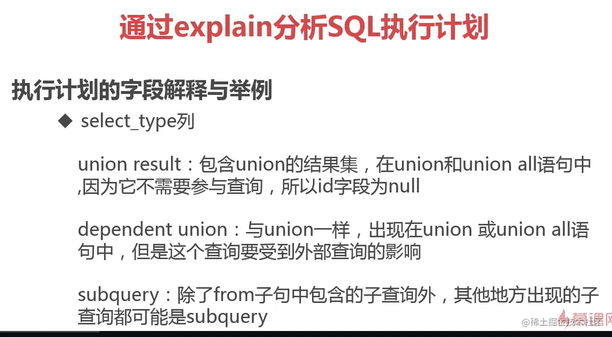 简单的查询是simple;有关联查询,最外层是primary,下面的是union
