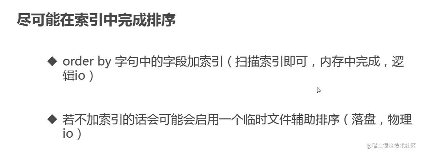 如果排序的字段没有加上索引,会使用临时文件,增加了额外的物理io