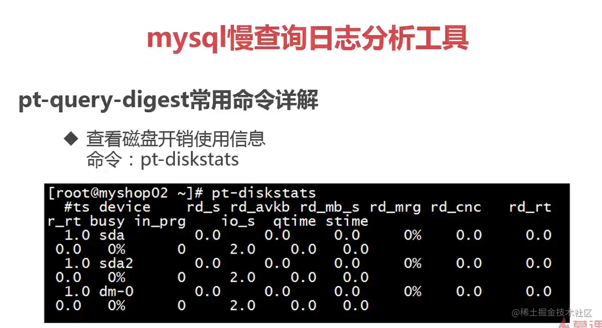 pt-diskstats命令可以查询mysql的环境信息,包括引擎,磁盘开销,数据库的集群情况