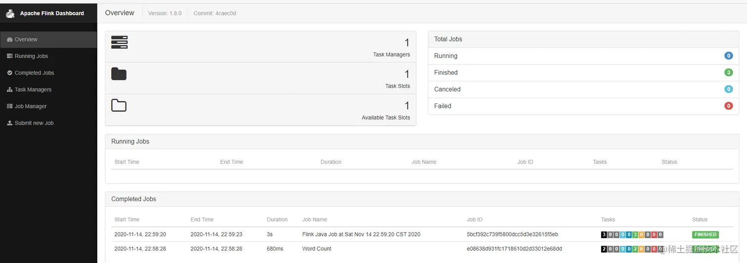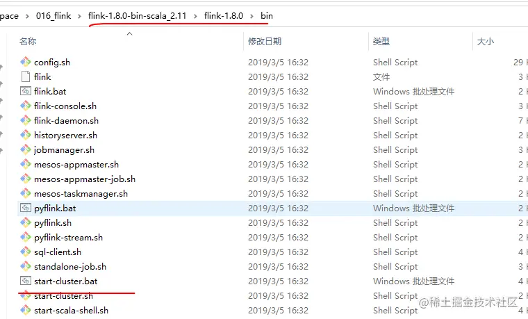 注意2: 为什么要 flink 1.8.0 尼,因为我百度很多的博文出来在 win 启动 flink 都是通过 ./bin/start-cluster.bat 这个命令来的,最新的 flink 版本的 bin 目录下好像没有这个 bat 文件