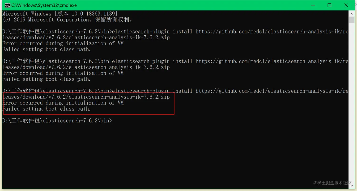 在我细细思量后,确实是我的JAVA_HOME没有设置。如今却在安装ik分词器的时候翻了车。
