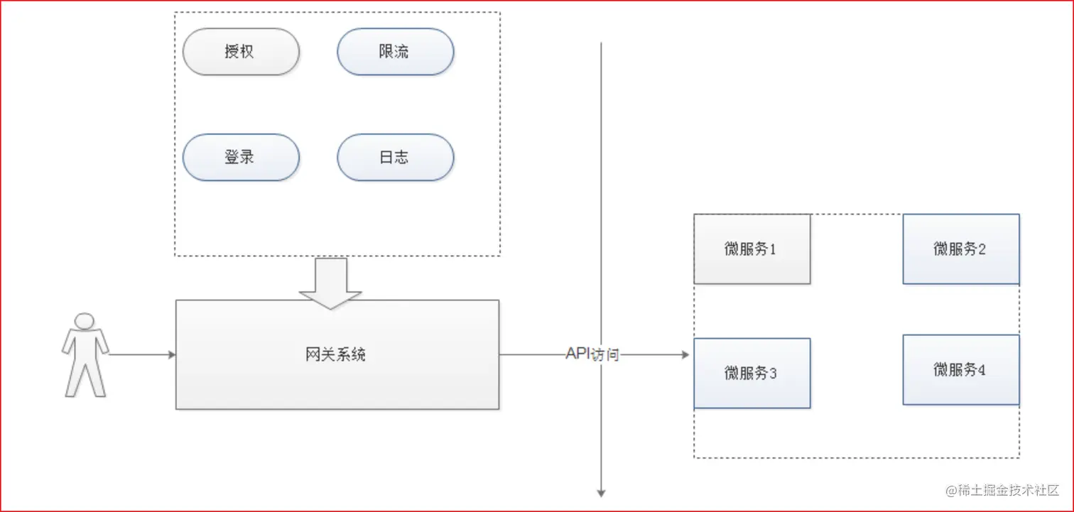 微服务网关就是一个系统,通过暴露该微服务网关系统,方便我们进行相关的鉴权,安全控制,日志统一处理,易于监控的相关功能。