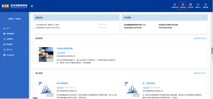 开发者登录BSN官网门户,右上方导航栏“帮助手册”进入。