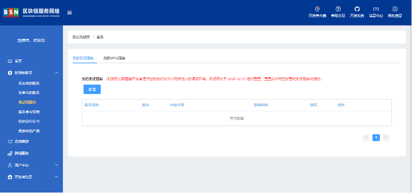BSN将根据测试网的资源负载使用情况,不定期的对测试数据进行清理,请不要将测试网用做生产环境。欢迎大家试用测试网服务并反馈问题和建议,我们将持续进行功能完善。获取更多关于测试网服务的帮助,请查看《区块链服务网络帮助手册》的“5.6测试网服务”部分。