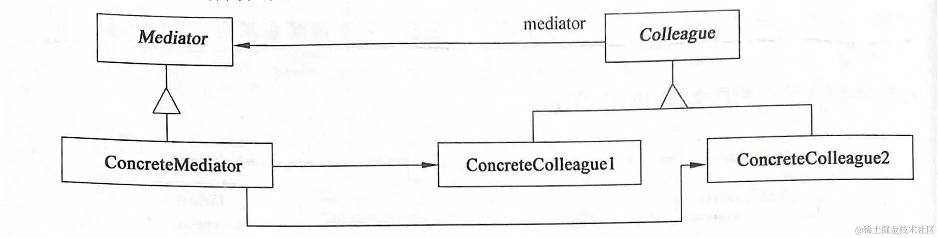 - 用一中个对务求针装一系列的对象交互。中介者使各对象不需要显式地相互引用,从而用一中个对务求针装一系列的对象交互。中介者使各对象不需要显式地相互引用,从而使其耦合松散,而且可以独立地改变它们之间的交互。
