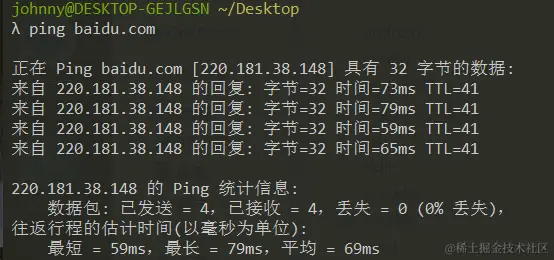 在cmder中输入ping XXXXXX.com可以获得当前访问域名的ip地址
