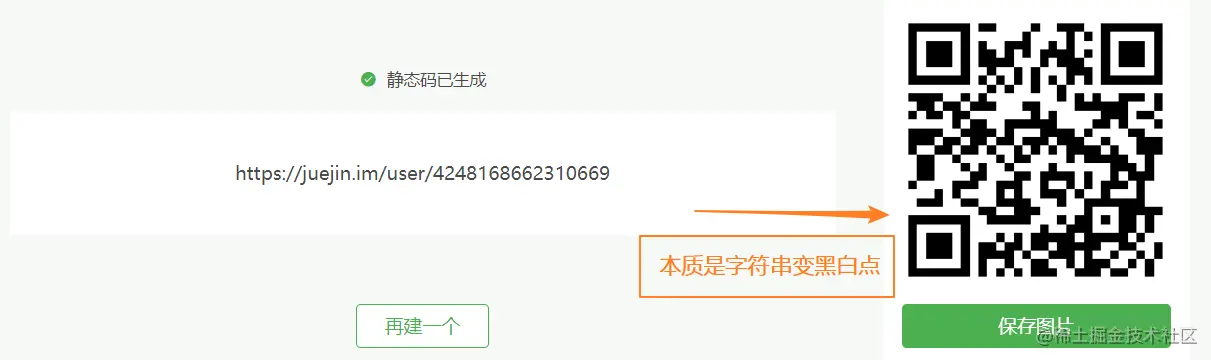 - 二维码的本质其实只是将一些数据(字符串)变成黑和白两种小点用二进制的方式显示出来而已.
