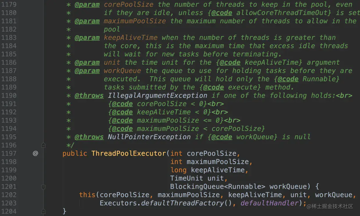 ,因此最终所有线程池的构造函数都调用了Java5后推出的ThreadPoolExecutor的如下构造函数