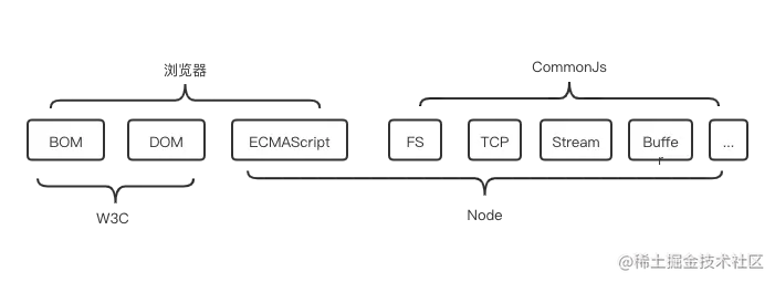 Node、浏览器、W3C组织、CommonJs组织、ECMAScript之间的关系,共同构建了一个强大繁荣的生态
