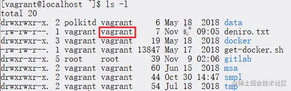 假设在当前目录下有一个文件(deniro.txt),隶属于名为 vagrant 的群组: