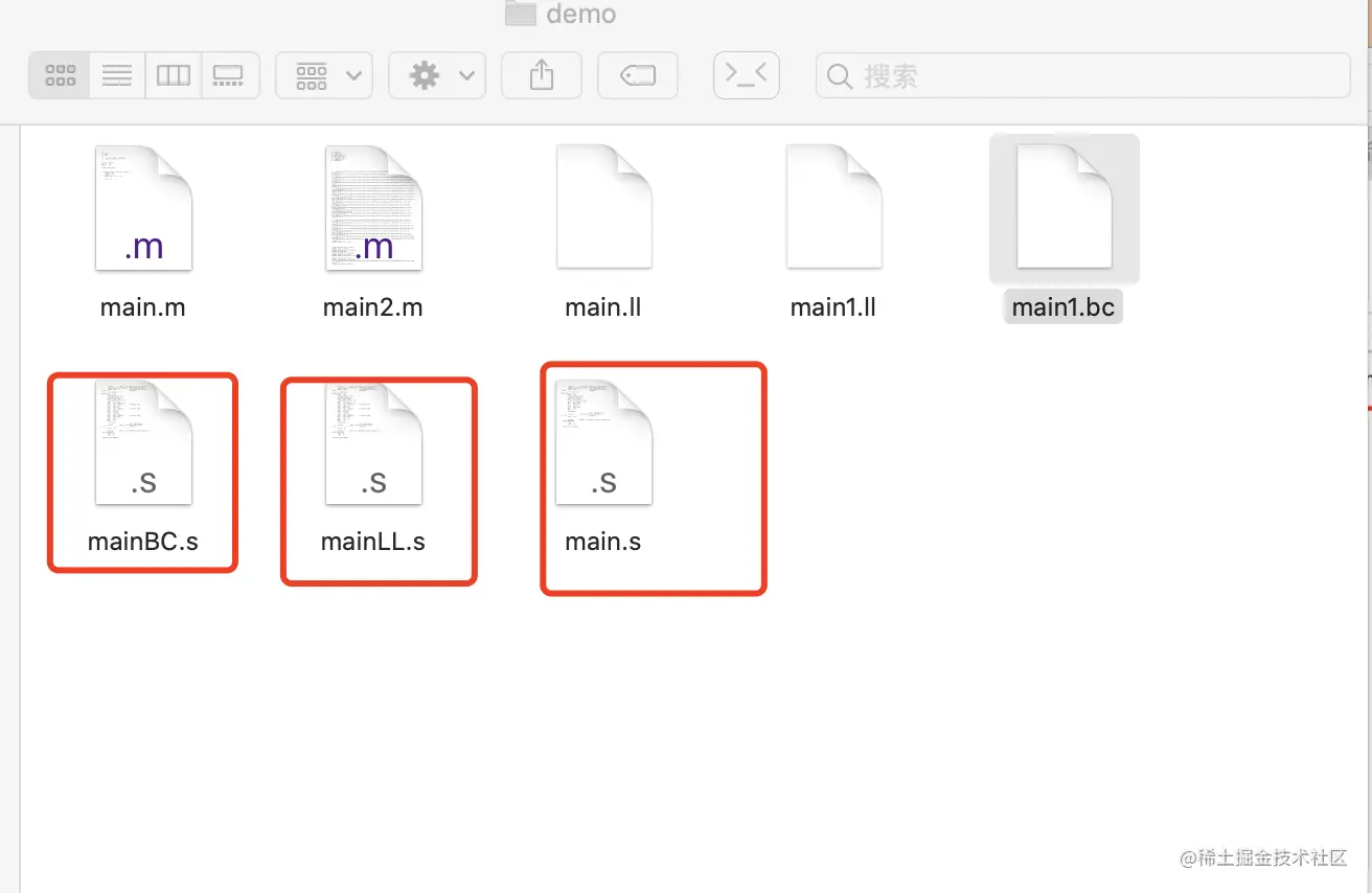通过上面的操作我们得到了main.m、mian1.ll和main1.bc文件,这些通过这些文件可以生成汇编代码.