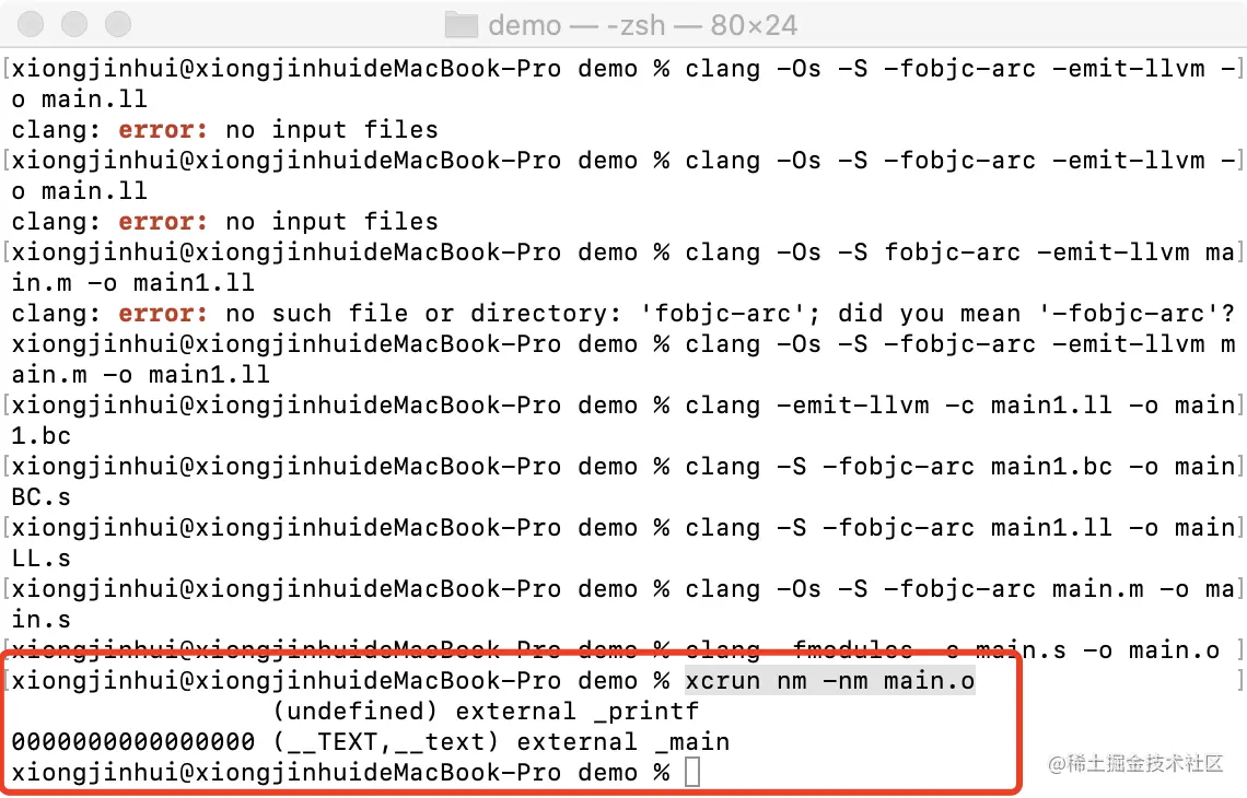 通过如下指令对main.m进行词法分析处理,查看编绎阶段做了什么