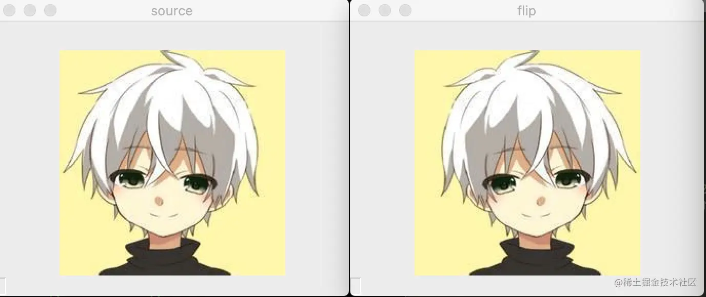 参数2 flipCode。用于指定镜像翻转的类型,code >0 表示水平翻转,code =0 表示垂直翻转,code <0 表示水平和垂直翻转。