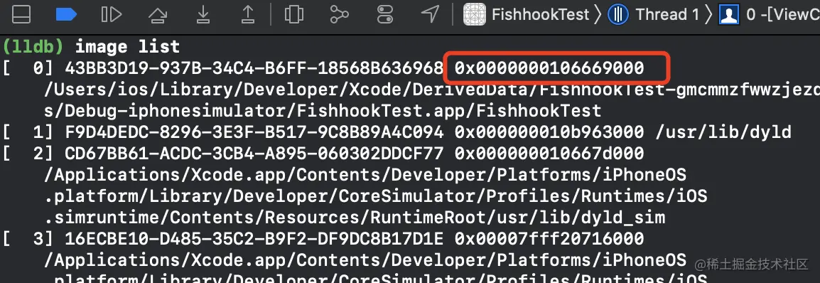 执行 image list 获取Mach-O的内存地址:0x0000000106669000
