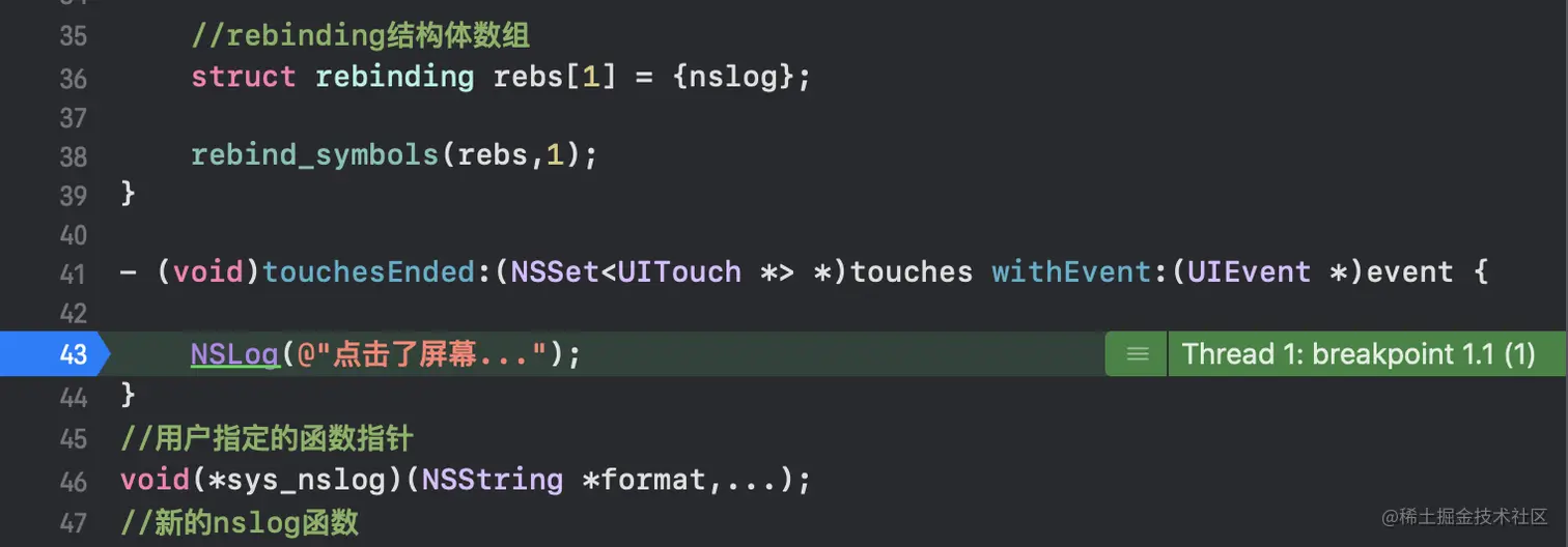 重绑定符号地址用的就是fishhook中的 rebind_symbols函数;