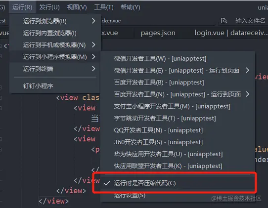 如图,运行到小程序时将“运行时是否压缩代码”勾选就可以了,这样基本可以压缩掉一大半占用空间。