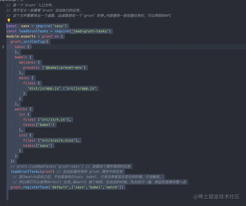 const loadGruntTasks =require('load-grunt-tasks') loadGruntTasks(grunt)会自动加载所有的