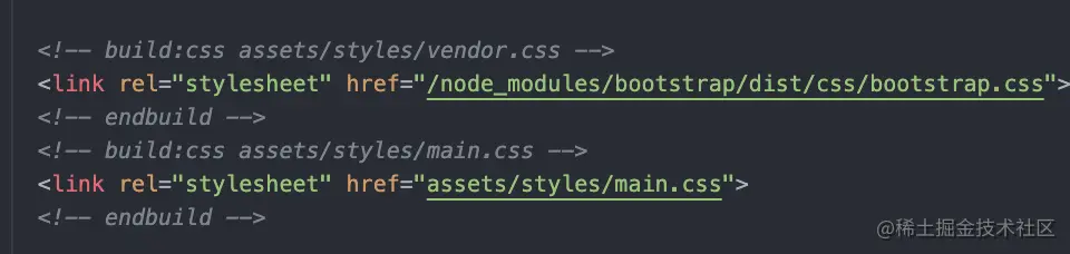 // useref可以把注释中间引入的资源,全部合并到一个文件当中,过程中自动修改了html,并且把html的依赖的文件创建了新的文件生成到了html文件当中