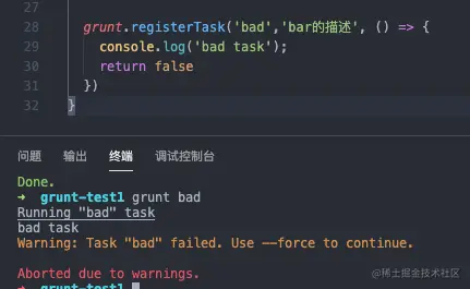 Grunt标记任务失败