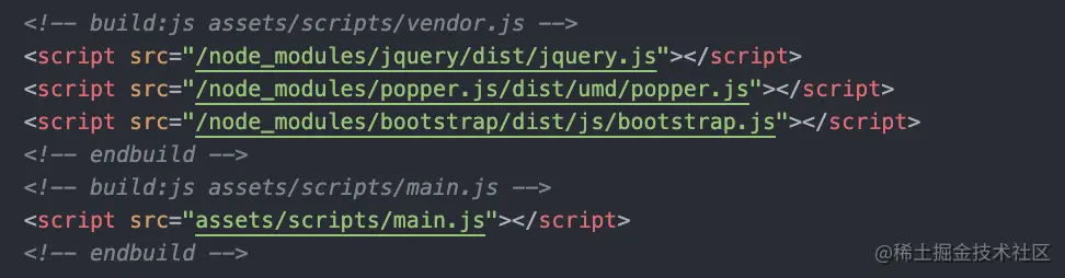 会自动处理html文件中的构建注释,做对应的转换